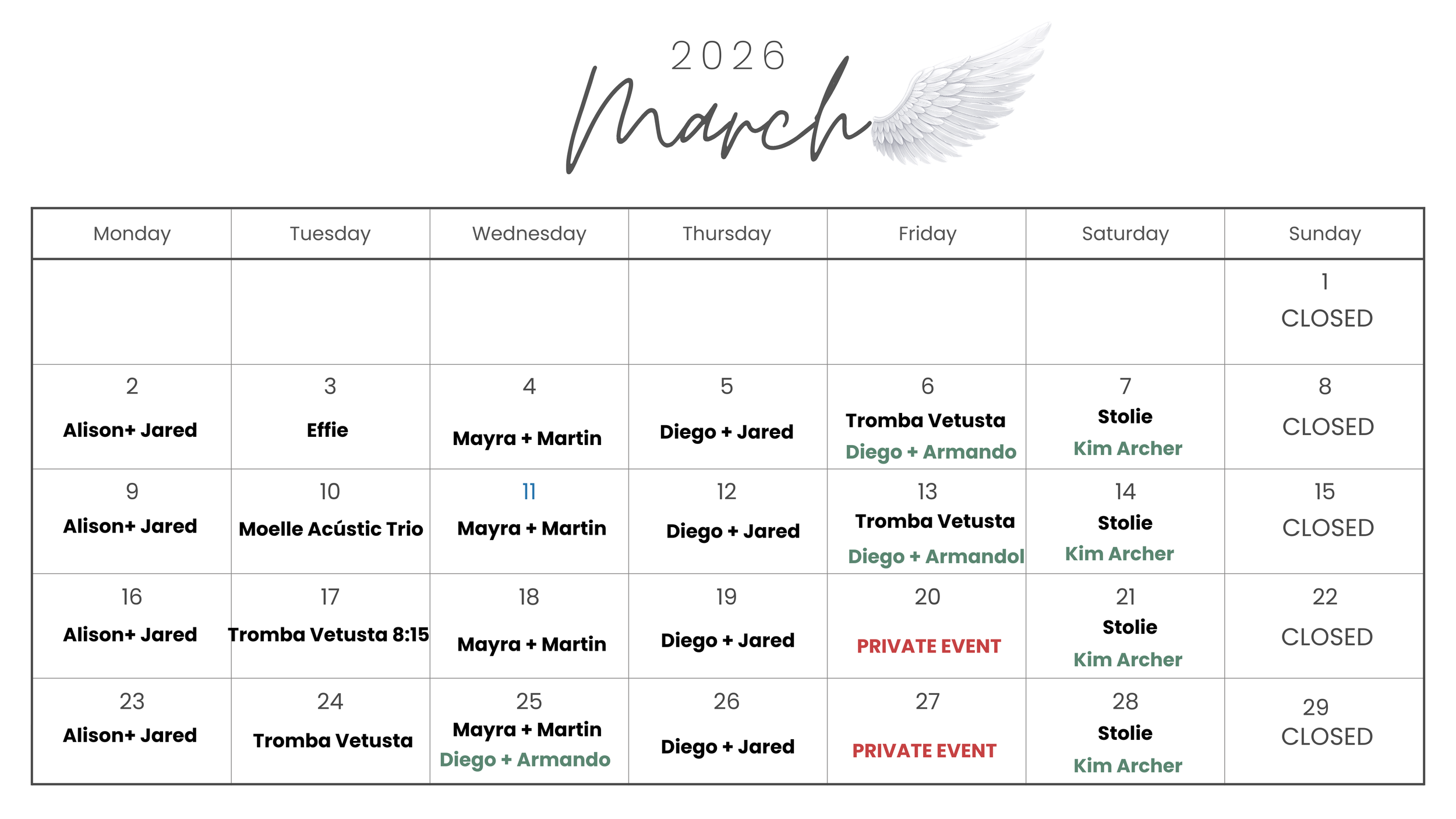 Wednesday: Mayra + Martin 7-9PM