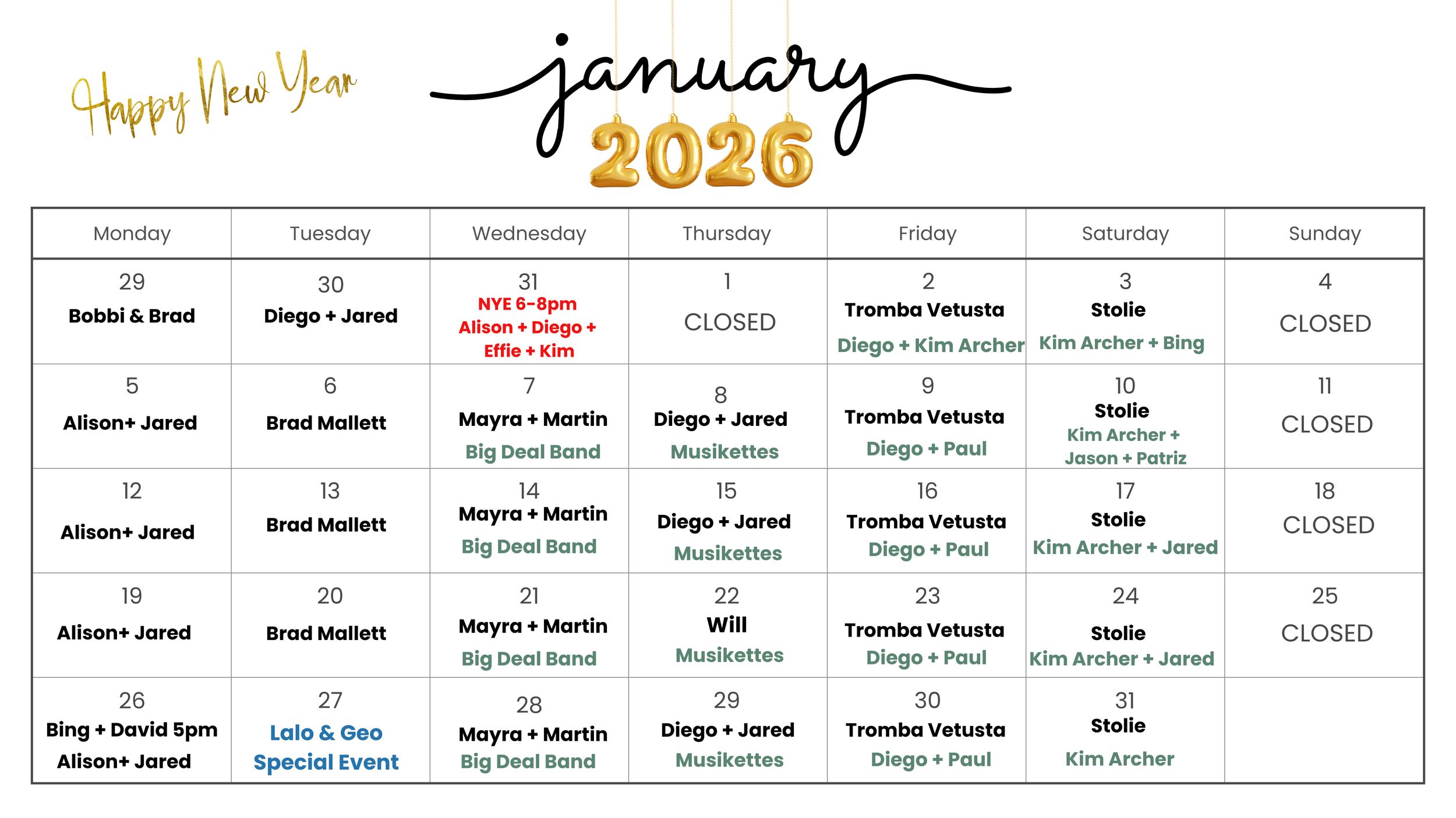 WEEK OF JAN 26 - 31 MUSIC EVENTS